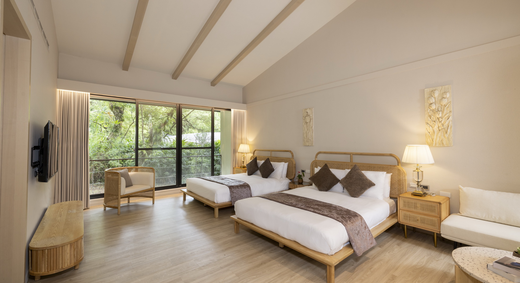 In harmony with the surrounding mountains and forests, Butterfly Valley Resort by Cosmos Otium brings together Cosmos Hotels & Resorts’ decades of expertise in leisure and hospitality to create a sanctuary that effortlessly blends comfort, elegance, and rejuvenation. The resort offers a variety of thoughtfully designed accommodations: BV Hall within the main building provides convenient layouts and fully equipped amenities for seamless comfort; Zen Suite, adorned with warm wooden tones and expansive floor-to-ceiling windows, allows the lush greenery outside to flow in, creating a serene and soothing retreat; and the Villa Area features standalone villas, each with a private balcony and exceptional privacy, offering the perfect haven for moments of reflection and tranquility.