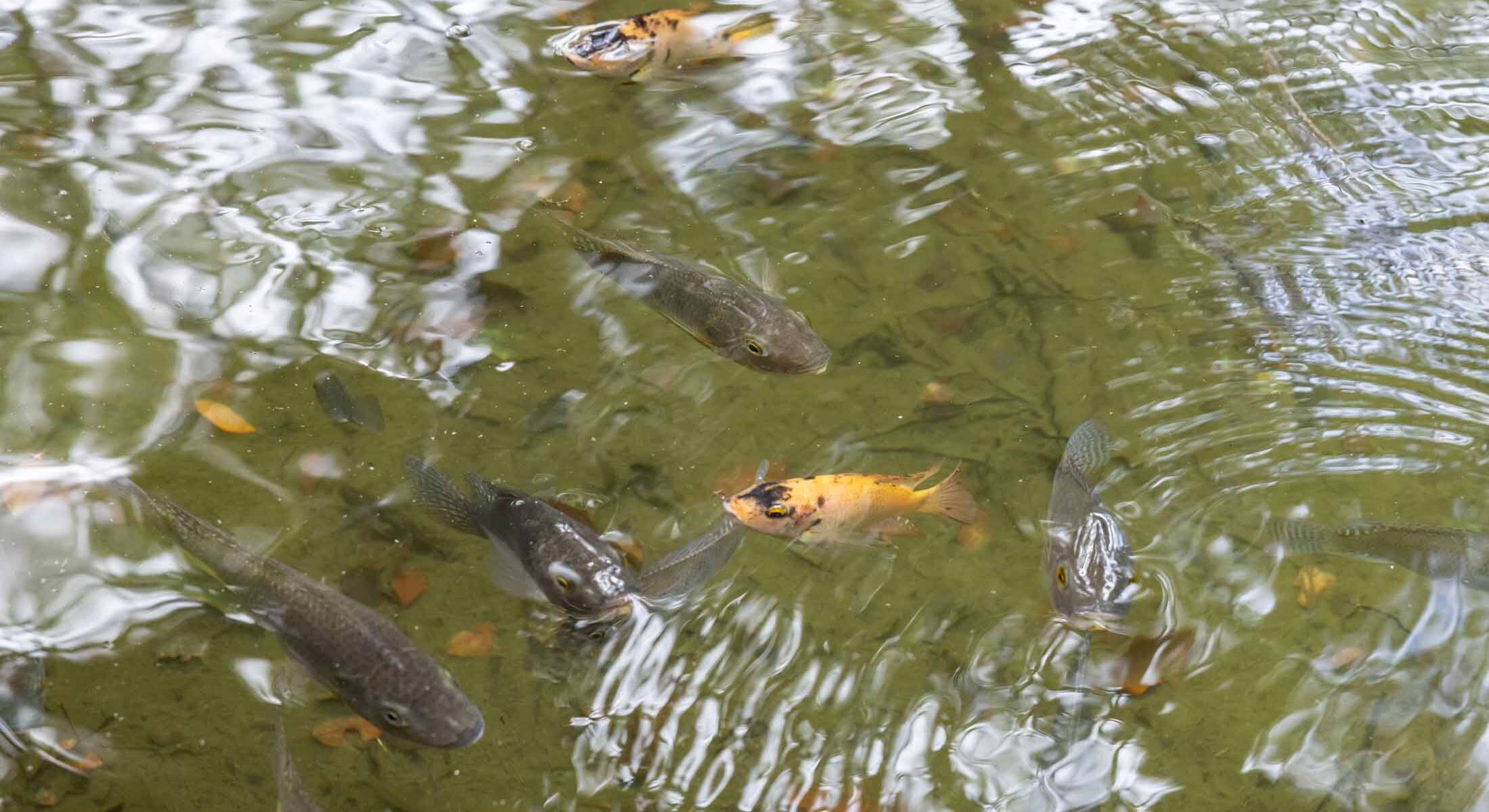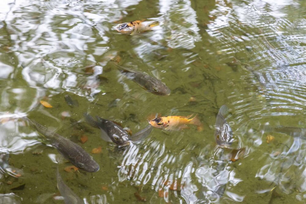晶瑩的水面映照著周圍翠綠山林,池中魚兒自在穿梭,水面泛起細碎漣漪,彷彿與大自然悄悄對話,帶來一段靜謐而溫柔的時光。