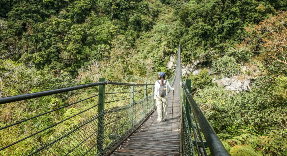 「龍吟吊橋」位於富源國家森林遊樂區環溪步道與環山步道的交會處,是園內最具代表性的景點之一。漫步於橋面,遠眺縱谷與海岸山脈,彷彿穿梭於雲端與綠意之間,讓人心隨景動。