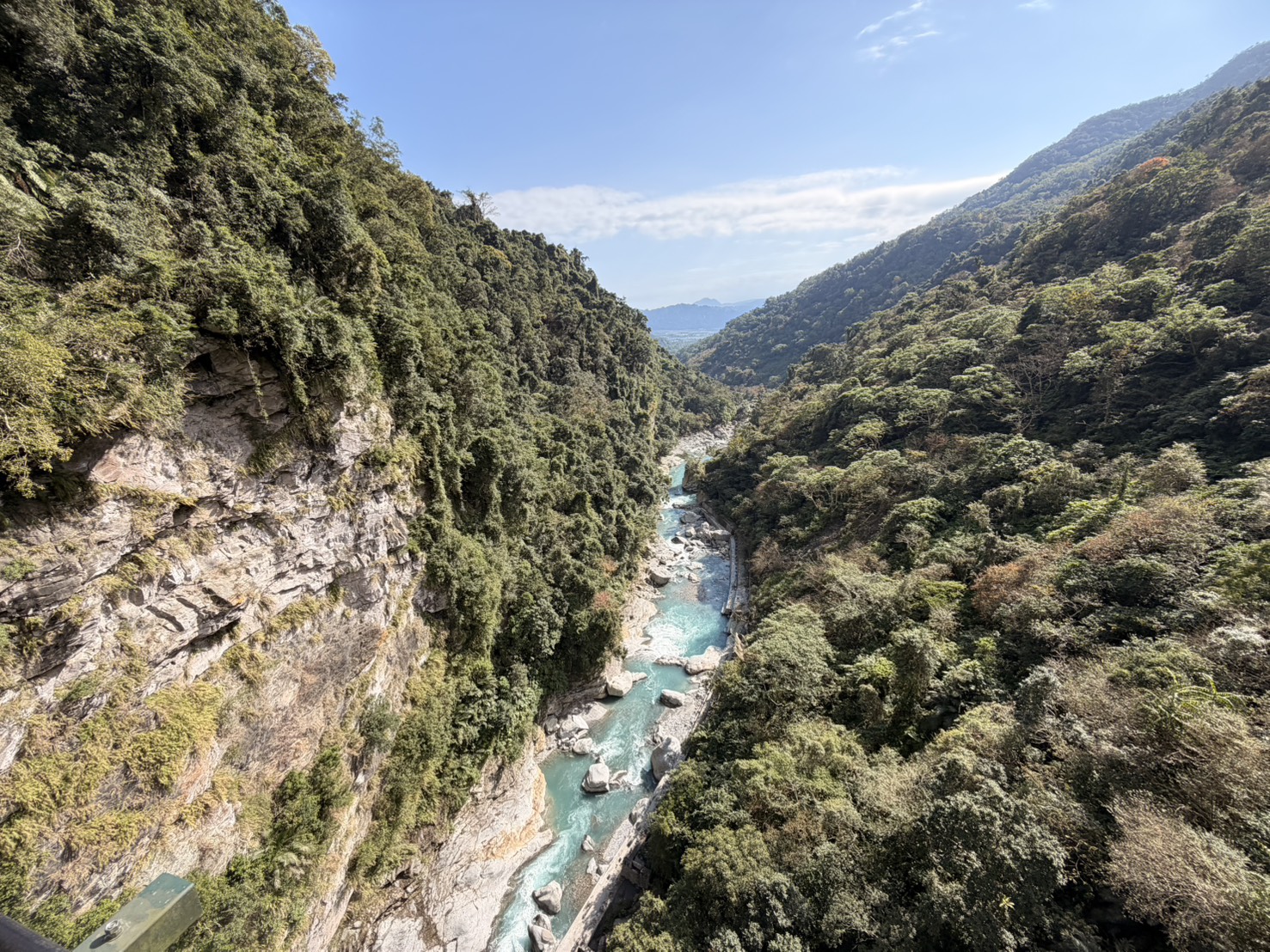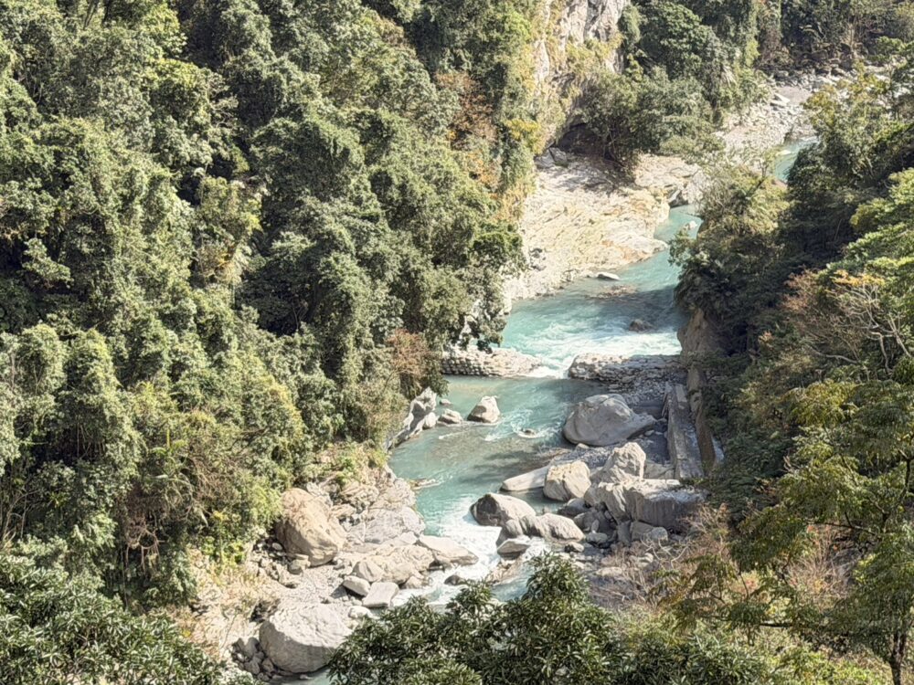 步道沿著富源溪緩緩向上延伸,沿線景觀以富源溪谷為主軸,巨石、深潭與滑瀑錯落其間,映襯湛藍清澈的溪水,勾勒出層次豐富而引人入勝的自然景致。隨著腳步深入,水聲與光影交織,讓人不自覺放慢節奏,沉浸於山林的靜謐之中。